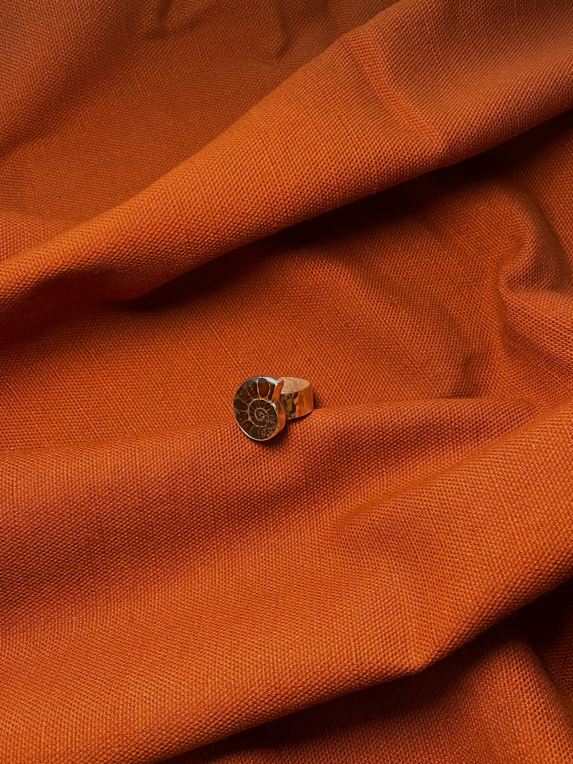Fossilised ammonite set in handmade hammered 925 sterling silver ring.
